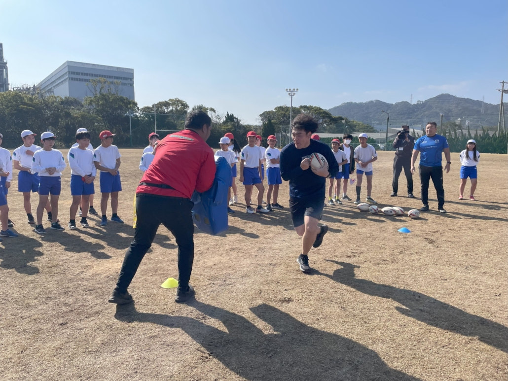 2月13日、早稲田佐賀唐津ラグビー場(旧唐津火力発電所敷地内)で、西唐津小学校6年生を対象としたタグラグビー教室を開催しました!
